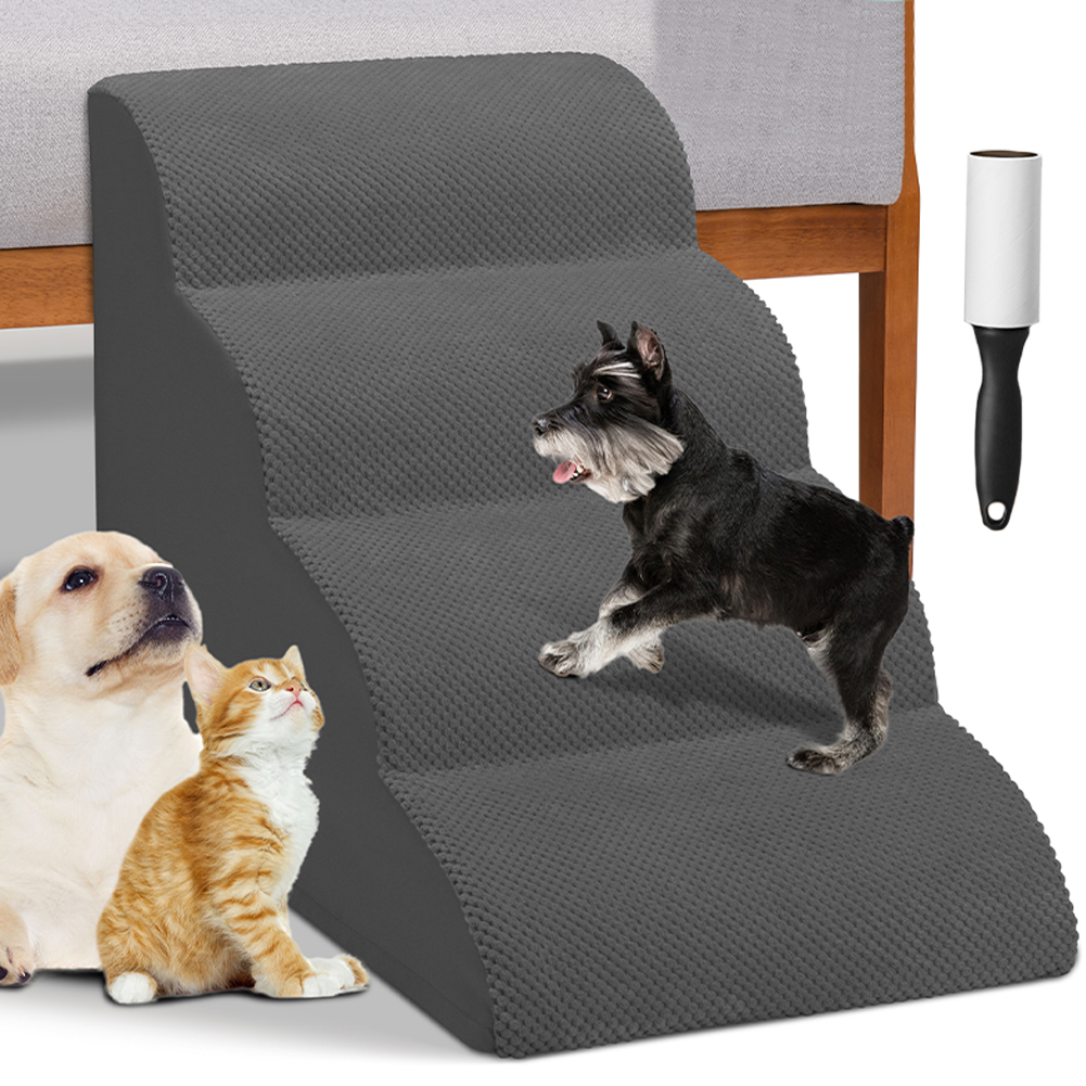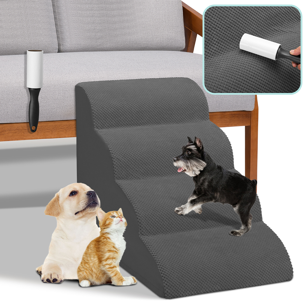 1 x Σκάλα για Κατοικίδια Γκρι 4 Σκαλοπάτια για Γάτες και Σκύλους Ρολό Αφαίρεσης Τριχών