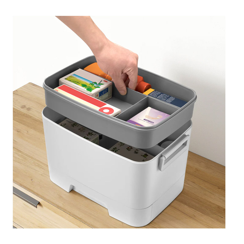 Το κουτί αποθήκευσης φαρμάκων, από την εταιρία Bakaji, σας επιτρέπει να ταξινομείτε και να αποθηκεύετε τα καθημερινά ιατρικά προϊόντα σας. Κατάλληλο για επιδέσμους, απολυμαντικά τραυμάτων, διάφορα χάπια και όλα όσα χρειάζεστε. Κατασκευασμένο από ABS πλαστικό PP υλικό, διαθέτει 1 συρτάρι και πολλά εσωτερικά διαμερίσματα.