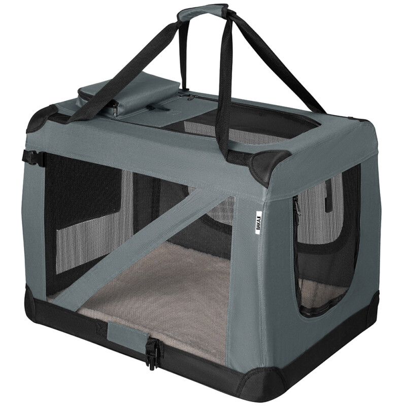 BAKAJI Φορητό Κλουβί για Κατοικίδια Ζώα Μέγεθος S Πτυσσόμενο Κλουβί για Σκύλους και Γάτες Γκρι 02841447