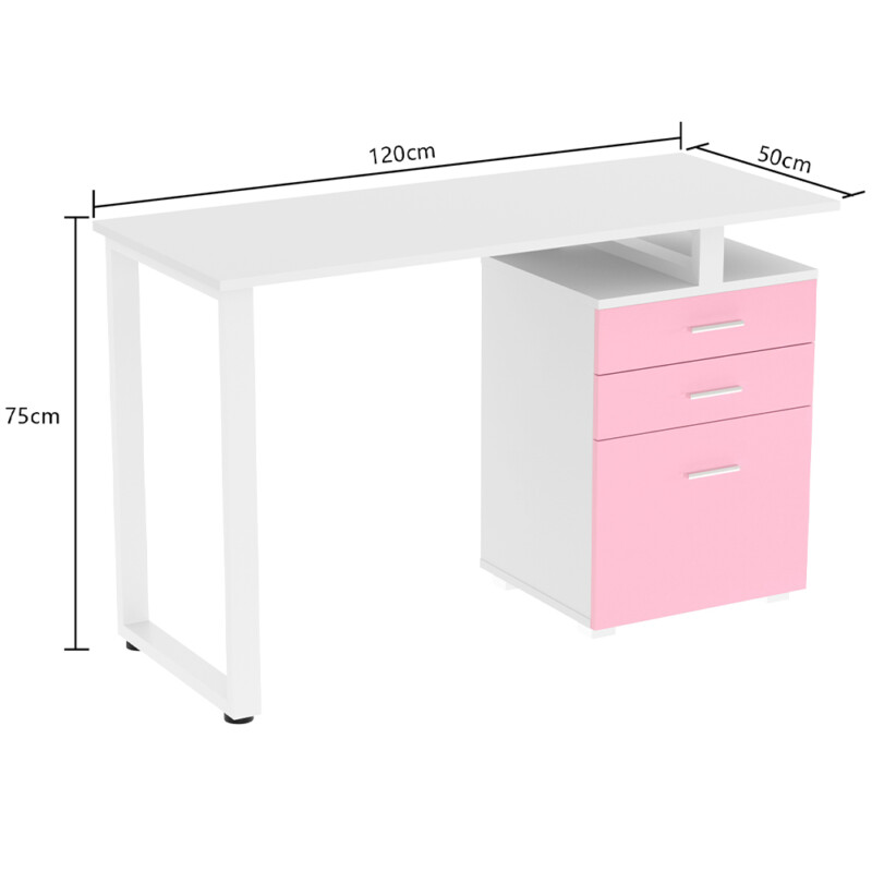 Αυτό που κάνει πραγματικά μοναδικό αυτό το γραφείο είναι η λειτουργική συρταριέρα με 3 συρτάρια από MDF ξύλο σε κομψό ροζ χρώμα με μεταλλικές λαβές, ιδανική για την αποθήκευση σημαντικών εγγράφων, χαρτικών και ό,τι άλλο επιθυμείτε.