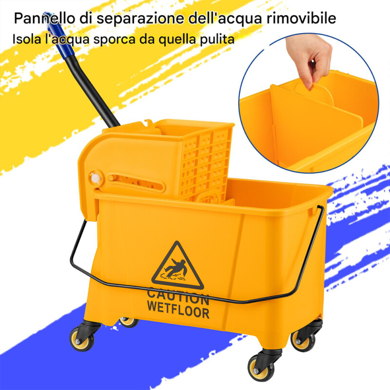 1 x Κουβάς Σφουγγαρίσματος 20L με Ρόδες και Στύφτη Διαχωριστικό Πάνελ