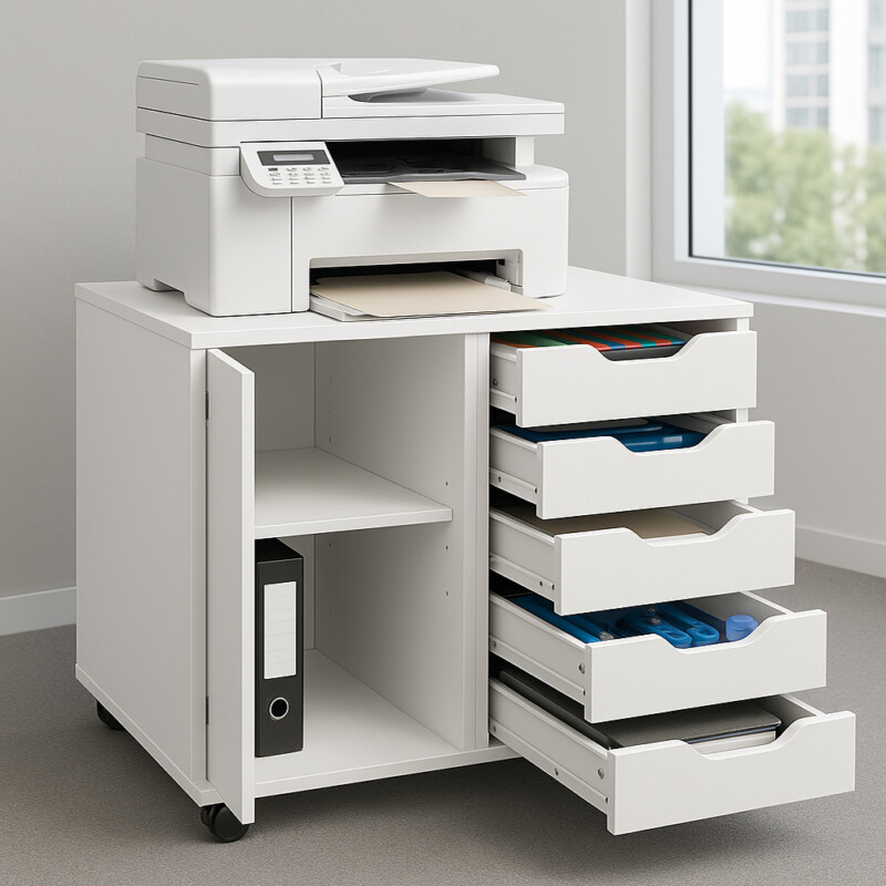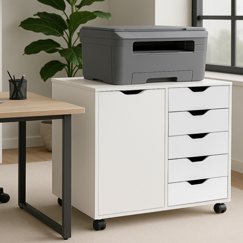 BAKAJI Φορητό Έπιπλο Γραφείου για Εκτυπωτή με Συρταριέρα 5 Συρταριών και Πόρτα Λευκό 02842789