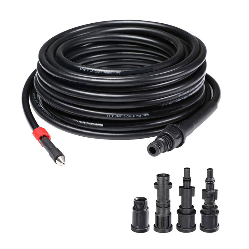 Καθαρίστε τους βουλωμένους σωλήνες και τις αποχετεύσεις, χωρίς τη χρήση χημικών και απορρυπαντικών με το αποφρακτικό λάστιχο για πλυστικά μηχανήματα, από την εταιρία Bakaji. Προσαρμόζεται τέλεια στην πλειοψηφία των πλυστικών πίεσης που διατίθενται στην αγορά, χάρη στους 4 αντάπτορες που το συνοδεύουν.