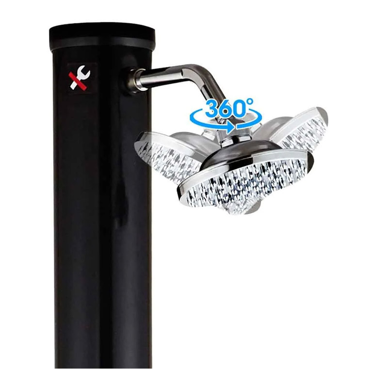 Το πάνω μέρος του ντους είναι εξοπλισμένο με μια μεγάλη κεφαλή 15 cm που είναι πλήρως ρυθμιζόμενη και κατευθυνόμενη για να κατευθύνει τον πίδακα νερού όπου προτιμάτε. Στο κάτω μέρος υπάρχει μια μικρή βρύση όπου μπορείτε να πλύνετε τα πόδια σας άνετα εάν δεν θέλετε να βραχείτε εντελώς.