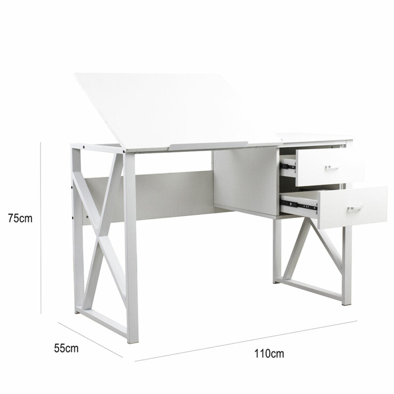 Με υψηλή ασφάλεια και σταθερότητα, αυτό το γραφείο για το σπίτι και το γραφείο διαθέτει στιβαρή μεταλλική κατασκευή υψηλής ποιότητας με επιφάνεια και συρταριέρα από MDF ξύλο σε λευκό χρώμα, καθιστώντας το πραγματικά μοναδικό και ιδιαίτερο.