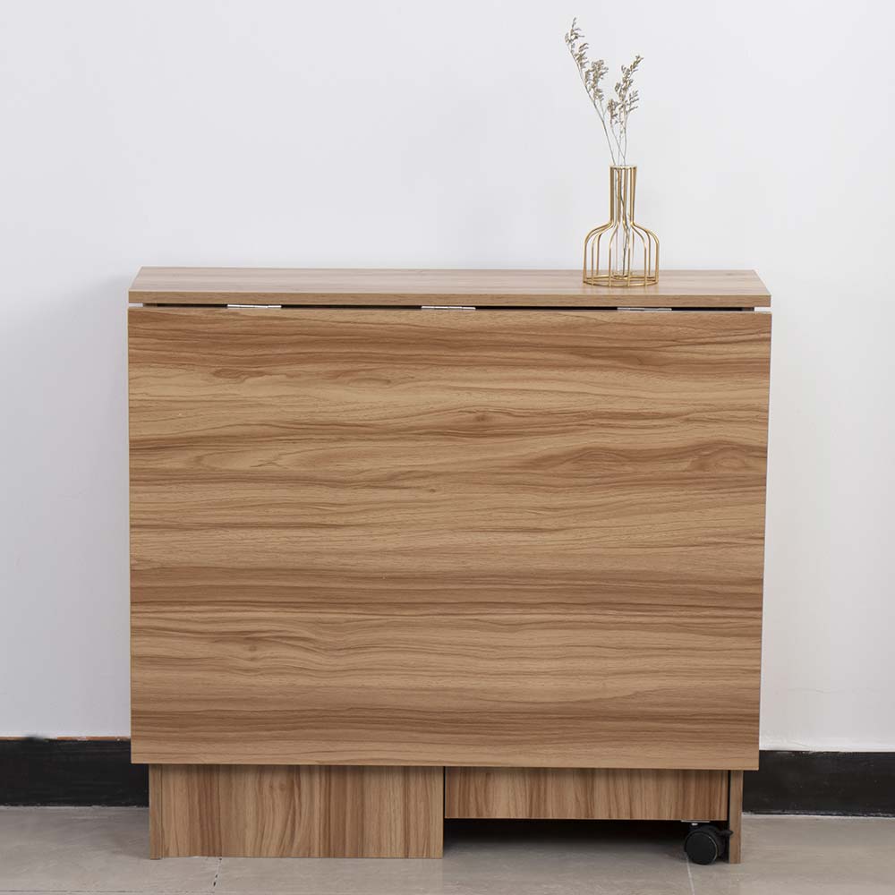 Όταν τελειώσετε τη χρήση του, το τραπέζι μπορεί να κλείσει και να αποθηκευτεί σε οποιοδήποτε χώρο, καταλαμβάνοντας ελάχιστο χώρο, ιδανικό ως μικρή επιφάνεια για αντικείμενα και ηλεκτρικές συσκευές, αλλά πάντα έτοιμο για επαναχρησιμοποίηση όταν χρειαστεί. Επιπλέον, οι άνετοι τροχοί επιτρέπουν εύκολη μετακίνηση.