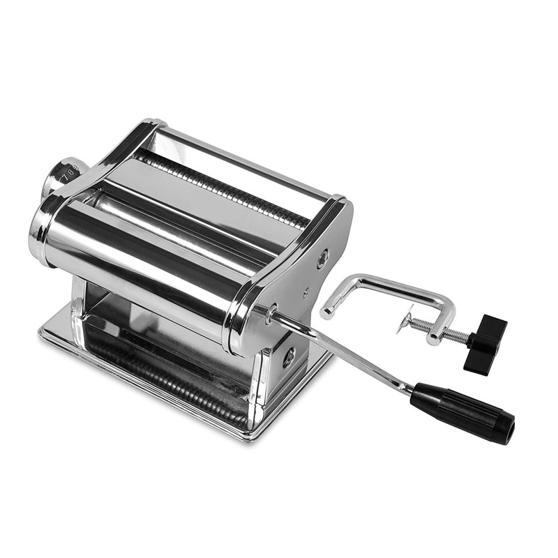 Απολαύστε τα καλύτερα σπιτικά ζυμαρικά με αυτή τη μηχανή ζυμαρικών, από την εταιρία Bakaji. Το σύστημα κυλίνδρων που διαθέτει, σας επιτρέπει να παράγετε λωρίδες ζύμης με πλάτος μεταξύ 0.3 mm και 2 mm. Μπορείτε επίσης να φτιάξετε μακριά ζυμαρικά όπως μακαρόνια, ταλιατέλες και λιγκουίνι. Μπορείτε να τη στερεώσετε με ασφάλεια στον πάγκο της κουζίνας σας, χρησιμοποιώντας τον ρυθμιζόμενο σφιγκτήρα, που εμποδίζει το μηχάνημα να αναποδογυρίσει και ελευθερώνει και τα δύο χέρια για να τροφοδοτήσει τα ζυμαρικά μέσα από το μηχάνημα. Εντελώς χειροκίνητη και εύκολη στη χρήση χάρη στην πρακτική μανιβέλα που σας επιτρέπει να προετοιμάσετε γρήγορα την επιθυμητή ζύμη.