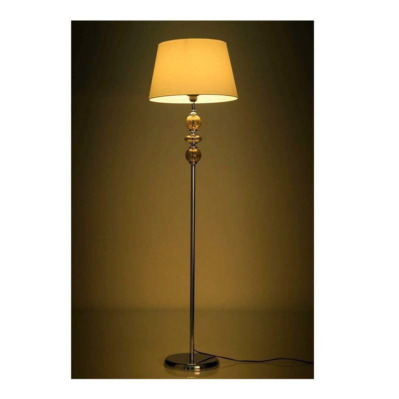 Το φωτιστικό δαπέδου, από την εταιρία Bakaji, χαρακτηρίζεται από στρογγυλή βάση με ατσάλινη ράβδο διακοσμημένη με κρυστάλλινες σφαίρες και λευκό υφασμάτινο αμπαζούρ. Συμβατότητα με λαμπτήρες E27 μέγιστης ισχύος 40 W και εξοπλισμένο με διακόπτη ON/OFF.