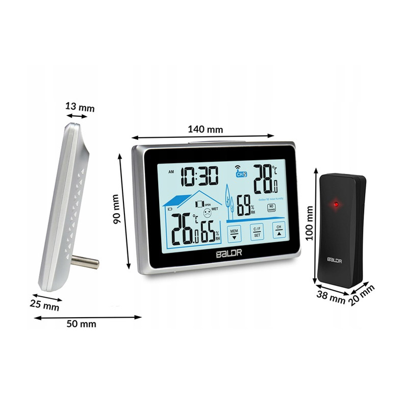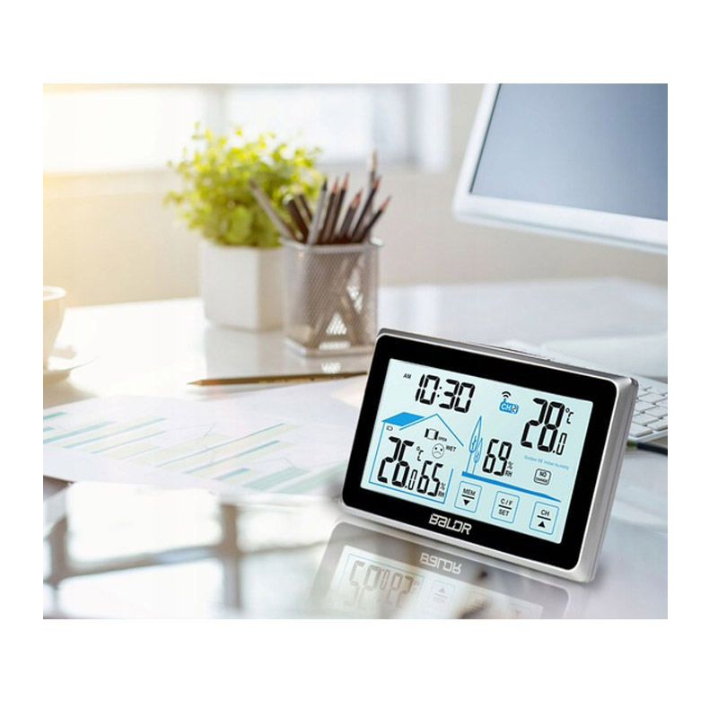 Ο ασύρματος επιτραπέζιος μετεωρολογικός σταθμός, από την εταιρία Baldr, διαθέτει ενσωματωμένο υγρόμετρο, το οποίο σας επιτρέπει να ελέγχετε και να διατηρείτε ένα κατάλληλο μικροκλίμα σε εσωτερικούς και εξωτερικούς χώρους. Χάρη στην ακρίβεια αυτών των μετρήσεων, μπορείτε εύκολα να αποφύγετε δυσμενείς συνέπειες για την υγεία, που σχετίζονται με τον κλιματισμό του σπιτιού σας.