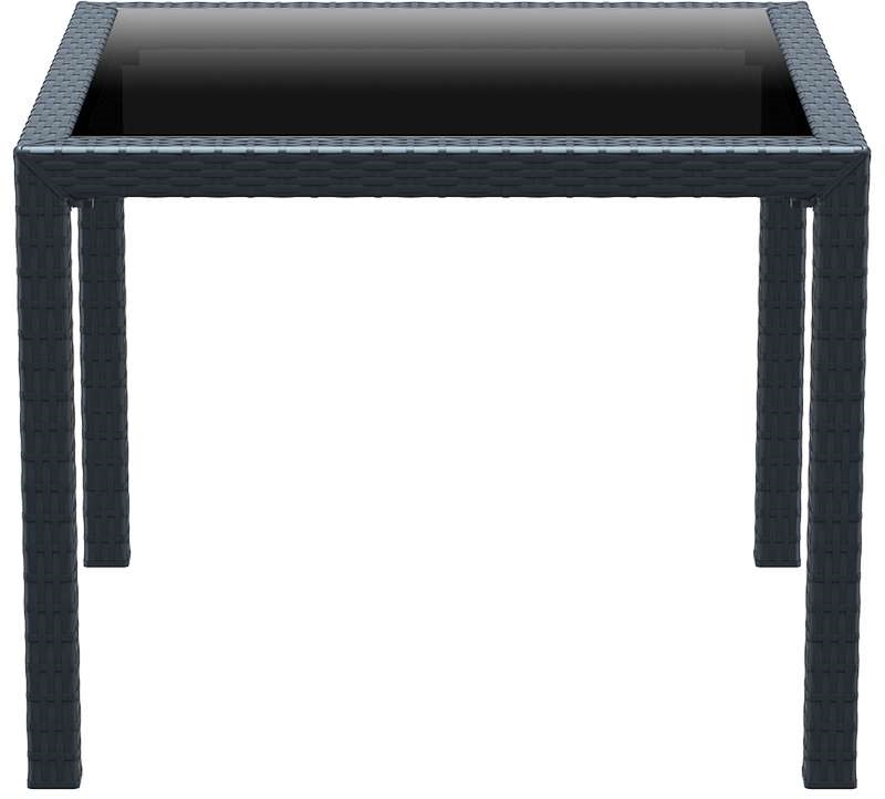 Τραπέζι BALI του οίκου Siesta,94Χ94Χ75 σε χρώμα Dark grey.Κατασκευασμένο από πολυπροπυλένιο και επιφάνεια από τζάμι ασφαλείας.Κατάλληλο για εσωτερική και εξωτερική χρήση,UV Protection.Πιστοποιημένο προιόν από τον Ιταλικό οίκο CATAS.