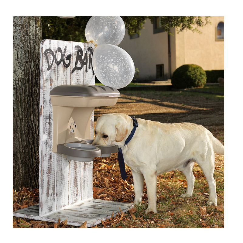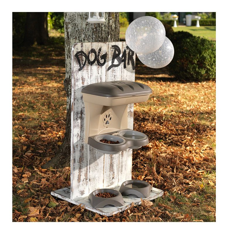 Η ταΐστρα και ποτίστρα, από την εταιρία Bama, είναι κατάλληλη για σκυλιά μεσαίου και μεγάλου μεγέθους. Κατασκευασμένη από πλαστικό υψηλής αντοχής στο χρόνο και την καθημερινή χρήση. Διαθέτει δύο πλαστικά μπολ για την τροφή και το νερό αντίστοιχα, τα οποία αφαιρούνται διευκολύνοντας τον καθαρισμό καθώς και αποθηκευτικό χώρο στην οροφή του για αποθήκευση αντικειμένων όπως κονσέρβες, λουράκι βόλτας, παιχνίδια κ.α. Μπορεί να τοποθετηθεί στον τοίχο (με βίδες) παρέχοντας καλύτερη στάση σώματος στο σκυλί σας κατά τη διάρκεια την θρέψης.