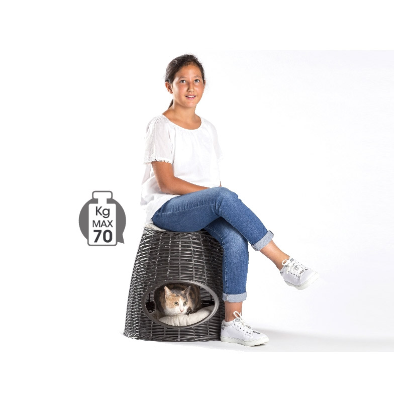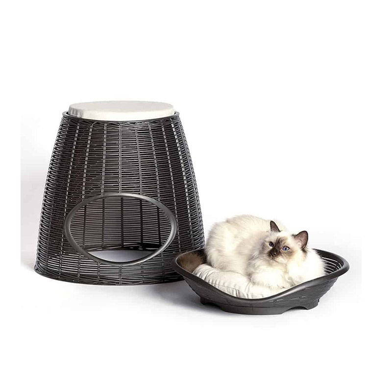 Το διπλό κρεβάτι-σκαμπό, από την εταιρία Bama, είναι κατάλληλο για μικρόσωμα κατοικίδια (σκύλους και γάτες). Είναι κατασκευασμένο από ανακυκλώσιμο πλαστικό, υλικό φιλικό προς το περιβάλλον και μεγάλης αντοχής στην υπεριώδη ακτινοβολία UV και στην καθημερινή χρήση. Μπορεί να χρησιμοποιηθεί ως κρεβάτι κατοικίδιων ή ως χρήσιμο σκαμπό μέγιστη αντοχής 70 Kg. Ιδανικό για γάτες που προτιμούν να κοιμούνται ψηλά αλλά και για αυτές που προτιμούν χαμηλά χάρη στο πρακτικό και ασφαλές πορτάκι.