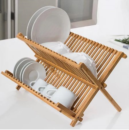 Αυτή η πιατοθήκη, από την εταιρεία BAMBOU & CO, διαθέτει 2 επίπεδα στα οποία μπορείτε να στεγνώσετε τα ποτήρια, τα πιάτα, τα μπολ και τα μαχαιροπίρουνά σας. Με τη μεγάλη του χωρητικότητα, είναι ιδανικό για μεγάλες οικογένειες ή άτομα που έχουν πολλά πιάτα να πλύνουν. Είναι επίσης πτυσσόμενη, καθιστώντας εύκολη την αποθήκευση όταν δεν χρησιμοποιείται.Τέλος, ο κομψός σχεδιασμός του από μπαμπού θα φέρει μια πινελιά φυσικότητας στην κουζίνα σας.