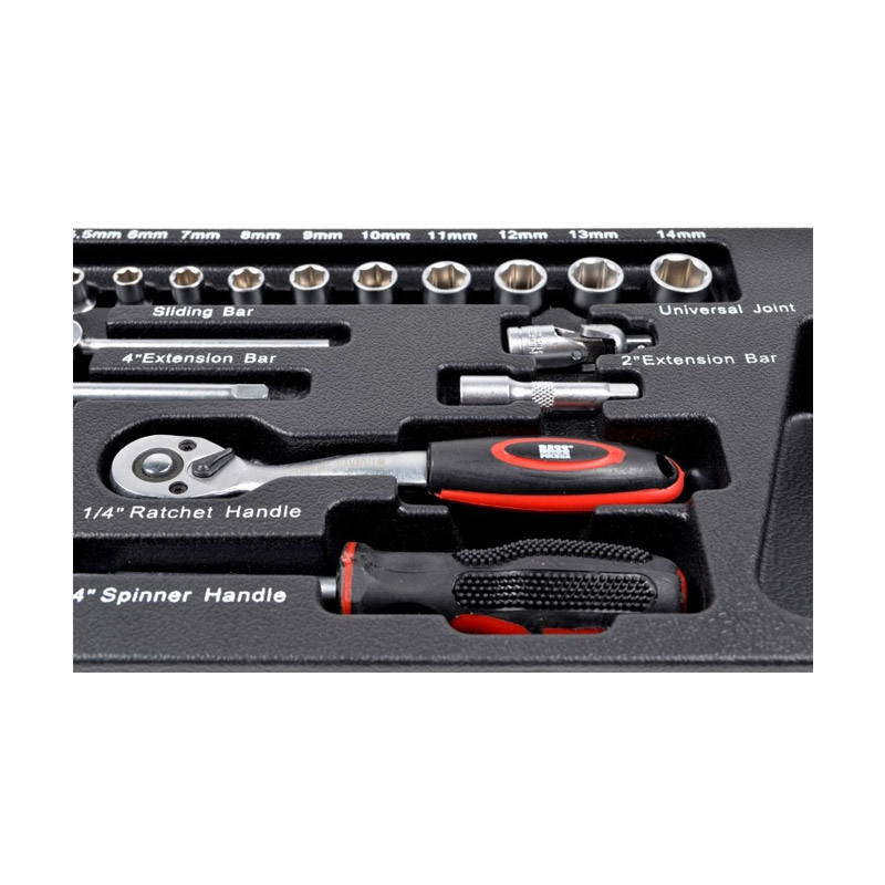 Η εργαλειοθήκη από την εταιρεία Bass Polska είναι κατασκευασμένη από ανθεκτικό πλαστικό υλικό, με εσοχές για εύκολη αποθήκευση και διαχωρισμό των εργαλείων και είναι κατάλληλη για τοποθέτηση σε συρτάρι εργαλειοφορέα.