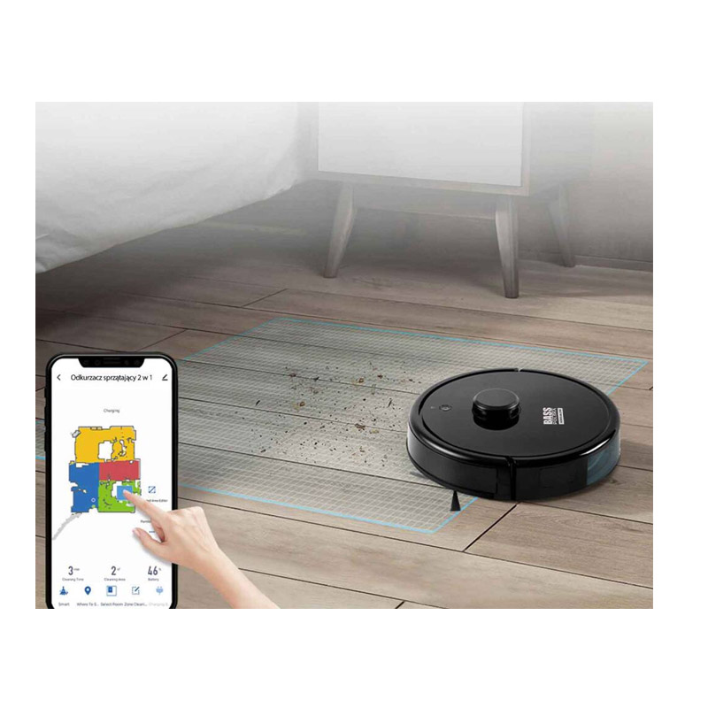 Η σκούπα ρομπότ 2 σε 1, από την εταιρία Bass Polska, είναι κατάλληλη για σκούπισμα και για σφουγγάρισμα. Είναι εξοπλισμένη με αισθητήρες λέιζερ και υπερήχων που μετρούν την απόσταση και δημιουργούν έναν χάρτη του δωματίου σε πραγματικό χρόνο. Χάρη στη χρήση αισθητήρων και στη σάρωση της διαδρομής, ο καθαρισμός είναι πλήρης και πολύ ενδελεχής. Χάρη στην κάμερα, η σκούπα σαρώνει και καθαρίζει με βάση τον χάρτη του δωματίου που δημιουργήθηκε.