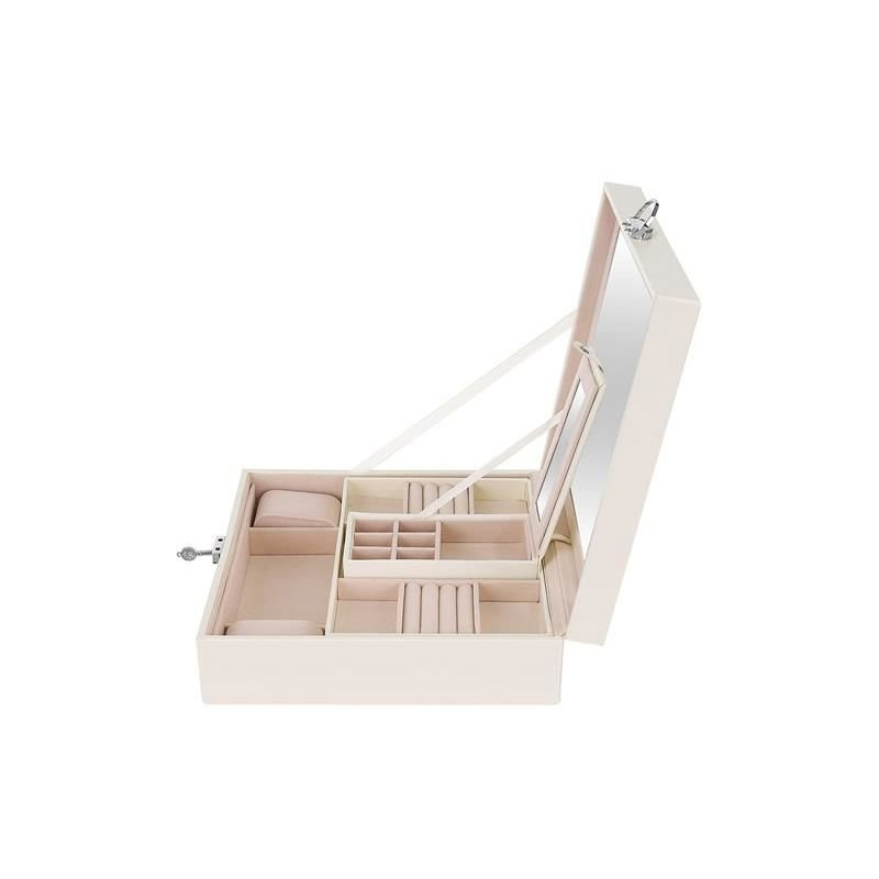 Η κοσμηματοθήκη, περιλαμβάνει επίσης ανακλινόμενο καθρέφτη με θήκη από κάτω που σας επιτρέπει να αποθηκεύσετε τα πιο πολύτιμα κοσμήματά σας. Χάρη στο κλειδί που περιλαμβάνεται, μπορείτε να είστε σίγουροι ότι κανένας άλλος δεν χρησιμοποιεί την κοσμηματοθήκη σας.