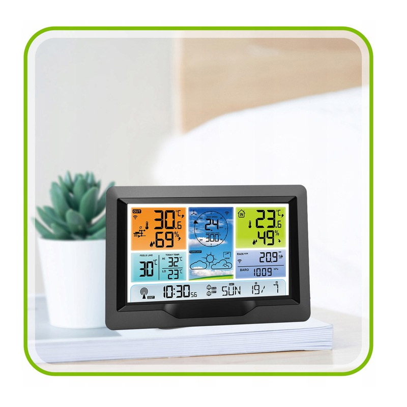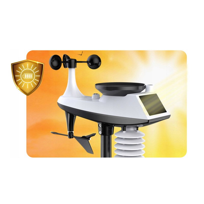 Ο οπίσθιος φωτισμός στον μετεωρολογικό σταθμό, μπορεί να ρυθμιστεί σε τρεις λειτουργίες, 100%, 50%, 10% ή και να τον απενεργοποιήσετε εντελώς. Με οικολογική συνείδηση, καθώς έχει τη δυνατότητα φόρτισης μέσω ηλιακού/φωτοβολταϊκού πάνελ (ηλιακό τροφοδοτικό). Συγχρονίζεται αυτόματα με τον αισθητήρα και έχει τη δυνατότητα σύνδεσης επιπλέον αισθητήρων. Ταυτόχρονα, υποδεικνύει μετρήσεις από το σταθμό και από τον αισθητήρα, τις οποίες μπορείτε εύκολα να διαβάσετε στην έγχρωμη LCD οθόνη. Μπορείτε να συνδέσετε έως και 3 επιπλέον αισθητήρες στον σταθμό.