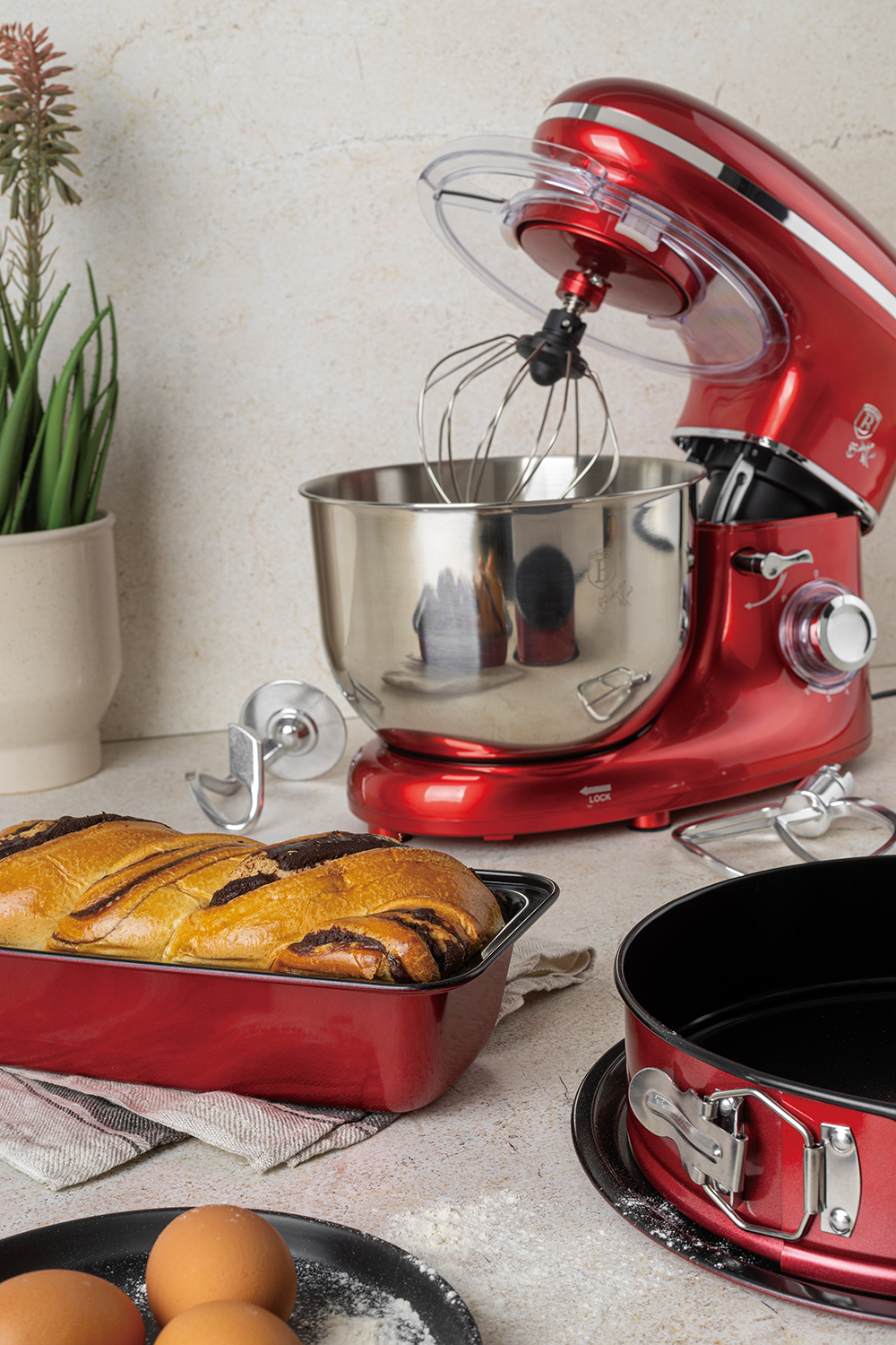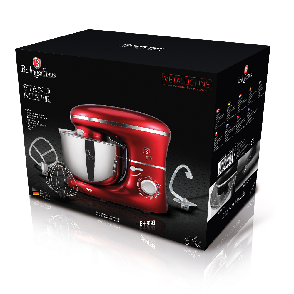 Berlinger Haus Κουζινομηχανή Μίξερ mixer 1300W με Ανοξείδωτο Κάδο 6L, Metallic Line Burgundy BH-9193
