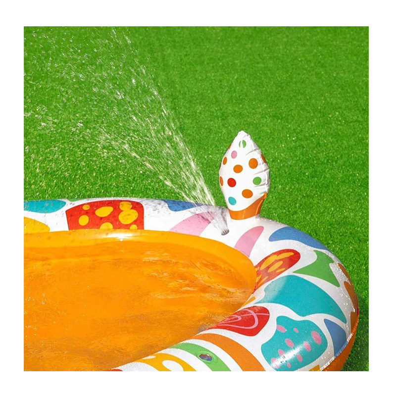 Η παιδική πισίνα, από την εταιρία Bestway, είναι κατασκευασμένη από PVC και έχει χωρητικότητα 220 Lt. Φουσκώνει και ξεφουσκώνει γρήγορα, διαθέτει βαλβίδα αποστράγγισης και ενσωματωμένο ψεκαστήρα νερού, ο οποίος συνδέεται με το λάστιχο κήπου.