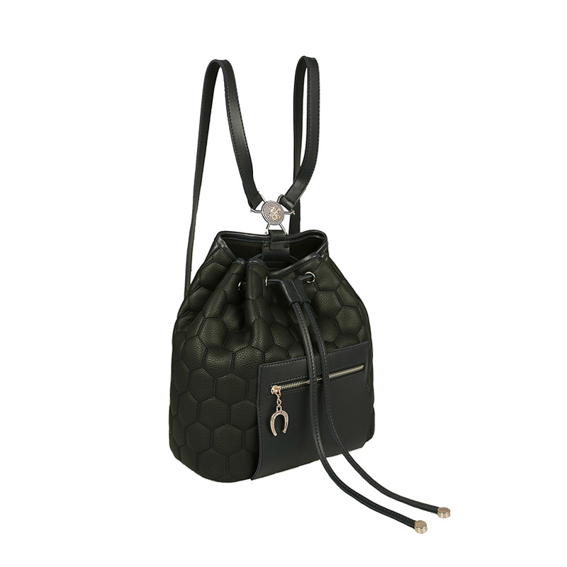 Η γυναικεία τσάντα πλάτης, από την εταιρία Beverly Hills Polo Club, είναι κατασκευασμένη από 100% πολυβινύλιο, επεξεργασμένο με τη μέθοδο Saffiano. Το δέρμα Saffiano έχει ανάγλυφη υφή που οφείλεται σε μηχανή που αποτυπώνει επάνω στο δέρμα (stamping method) αυτές τις χαρακτηριστικές γραμμές του δέρματος. Έχει μεγάλη αντοχή στο χρόνο και την βρωμιά ενώ η επεξεργασία του ολοκληρώνεται με επίστρωση στρώματος από κερί. Σαν αποτέλεσμα το δέρμα Saffiano είναι έχει μεγάλη αντοχή στις γρατζουνιές, απωθεί το νερό, ενώ καθαρίζεται πολύ εύκολα.