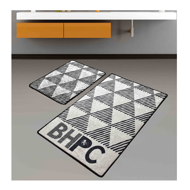 Σετ με 2 Χαλάκια Μπάνιου 60 x 100 cm Χρώματος Μαύρο – Εκρού Beverly Hills Polo Club Prisma DJT 587BHP2103