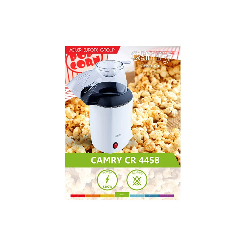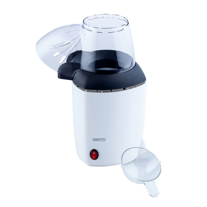Με τη συσκευή, από την εταιρία Camry, χάρη στην τεχνολογία ζεστού αέρα που διαθέτει, μπορείτε να φτιάξετε μεγάλες ποσότητες ποπ κορν χωρίς τη χρήση λαδιού ή βουτύρου. Για να κάνετε μία μερίδα, χρειάζονται μόνο 2.5 λεπτά.
