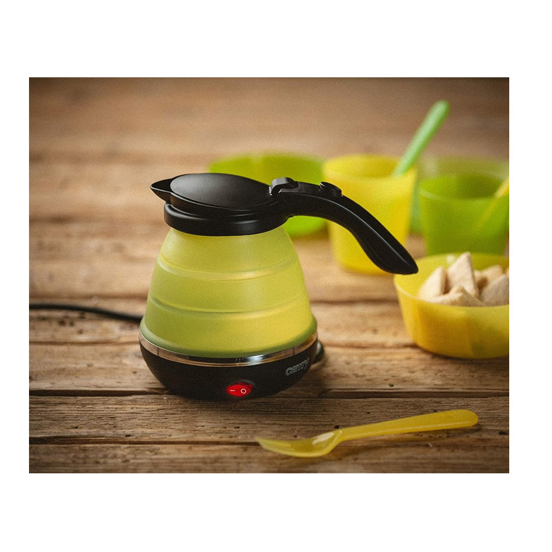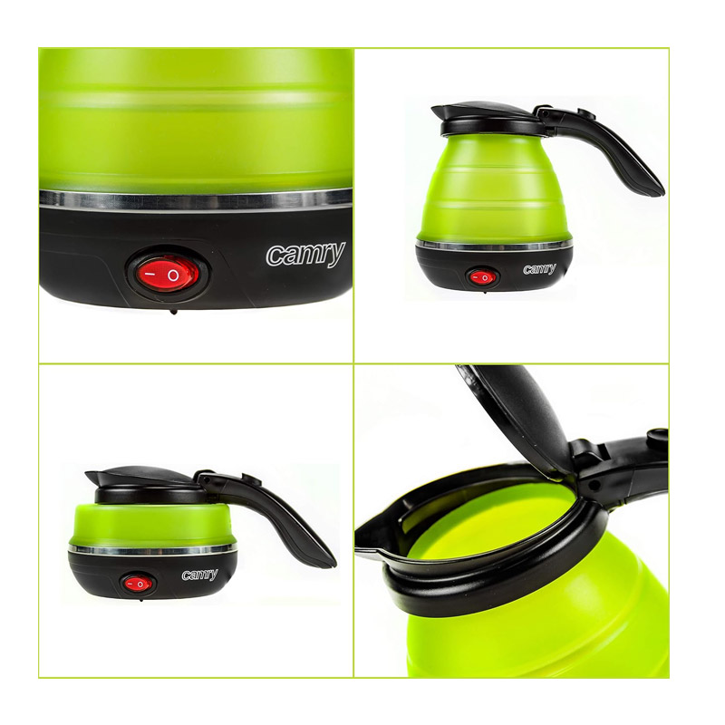 Ο βραστήρας, από την εταιρία Camry, έχει αναδιπλούμενο σχεδιασμό και σώμα από μαλακή σιλικόνη, για εύκολη αποθήκευση. Διαθέτει ισχύ 750 W, λαβή από πλαστικό, φωτιζόμενο διακόπτη ενεργοποίησης / απενεργοποίησης και χωρητικότητα 0.5 Lt.