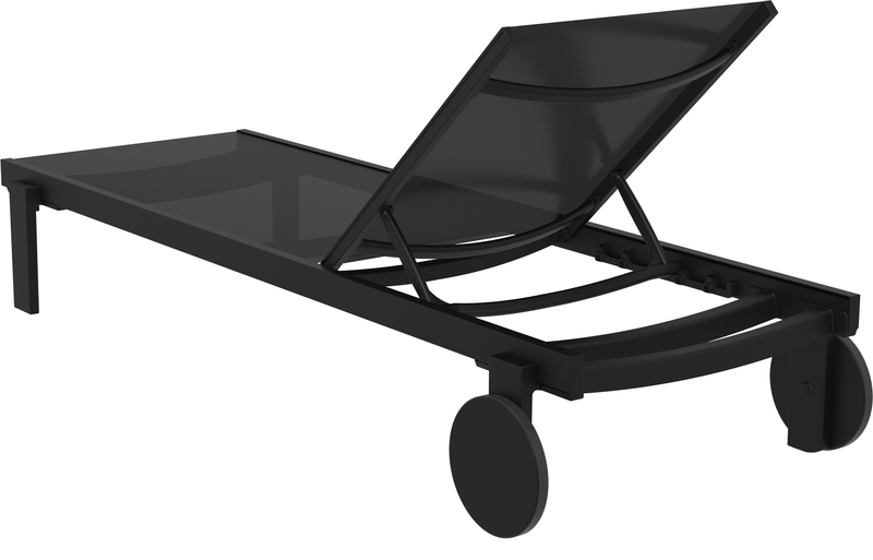 Ξαπλώστρα CASABLANCA του οίκου Siesta σε χρώμα black/black από υψηλής ποιότητας αλουμίνιο & πολυπροπυλένιο με ενίσχυση από υαλώδεις ίνες (fiber glass) για απόλυτη αντοχή και polyester fabric Serge Ferrari.Είναι στοιβαζόμενη,έχει ρυθμιζόμενη πλάτη 5 θέσεων,αντιολισθητικά πέλματα εμπρός και ρόδες απο καουτσούκ.Κατάλληλη για εσωτερική και εξωτερική χρήση.Πιστοποιημένο προιόν από τον Ιταλικό οίκο CATAS.