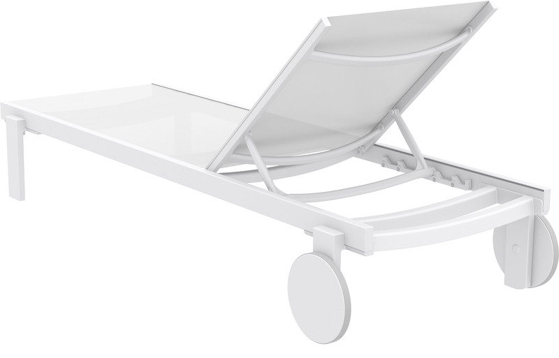 Ξαπλώστρα CASABLANCA του οίκου Siesta σε χρώμα white/white από υψηλής ποιότητας αλουμίνιο & πολυπροπυλένιο με ενίσχυση από υαλώδεις ίνες (fiber glass) για απόλυτη αντοχή και polyester fabric Serge Ferrari.Είναι στοιβαζόμενη,έχει ρυθμιζόμενη πλάτη 5 θέσεων,αντιολισθητικά πέλματα εμπρός και ρόδες απο καουτσούκ.Κατάλληλη για εσωτερική και εξωτερική χρήση.Πιστοποιημένο προιόν από τον Ιταλικό οίκο CATAS.
