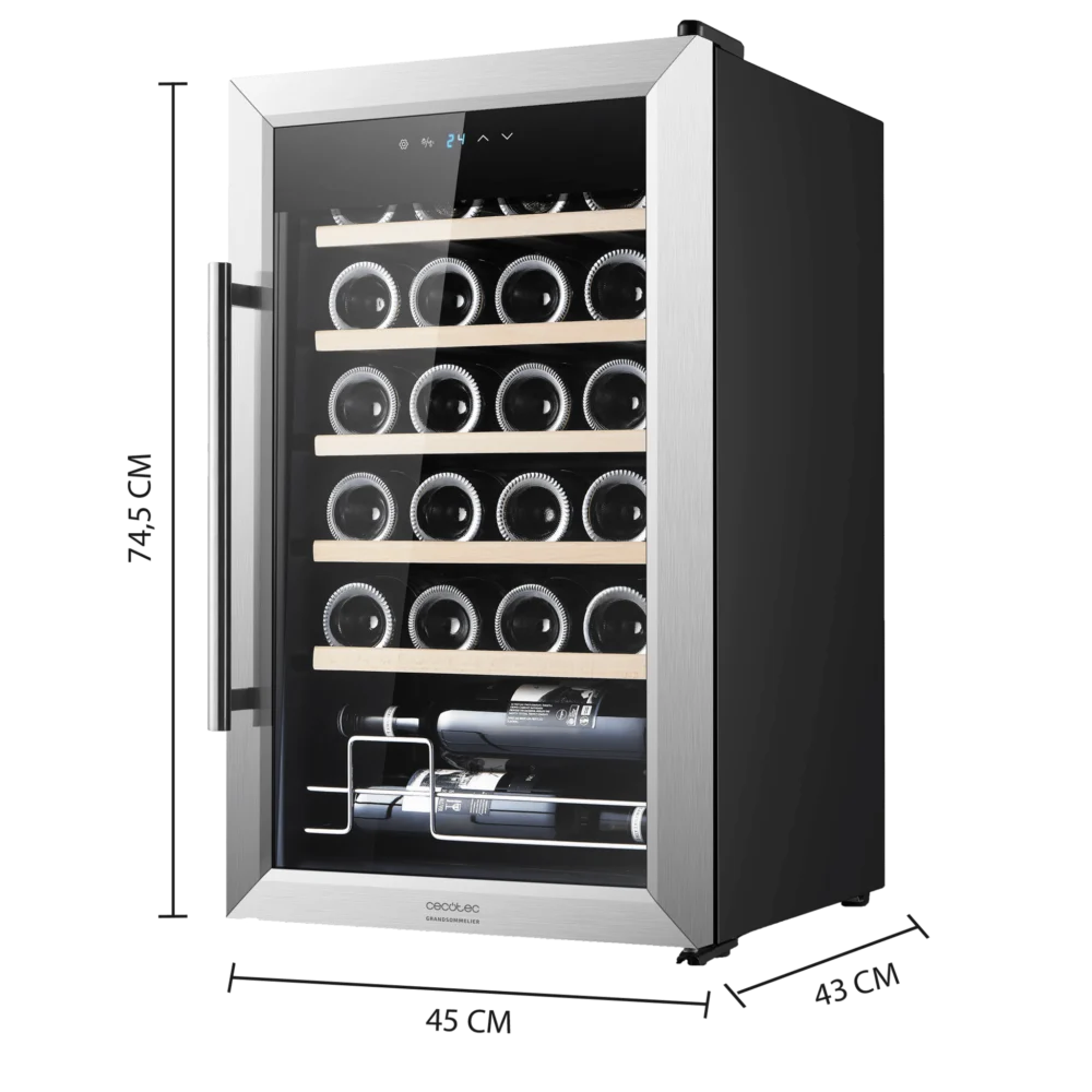 CECOTEC Συντηρητής Κρασιών Bolero GrandSommelier 2450 Inox με Συμπιεστή, Χωρητικότητα 24 Φιαλών, Ρυθμιζόμενη Θερμοκρασία 5-18ºC, και Πίνακας Ελέγχου Αφής CEC-00125