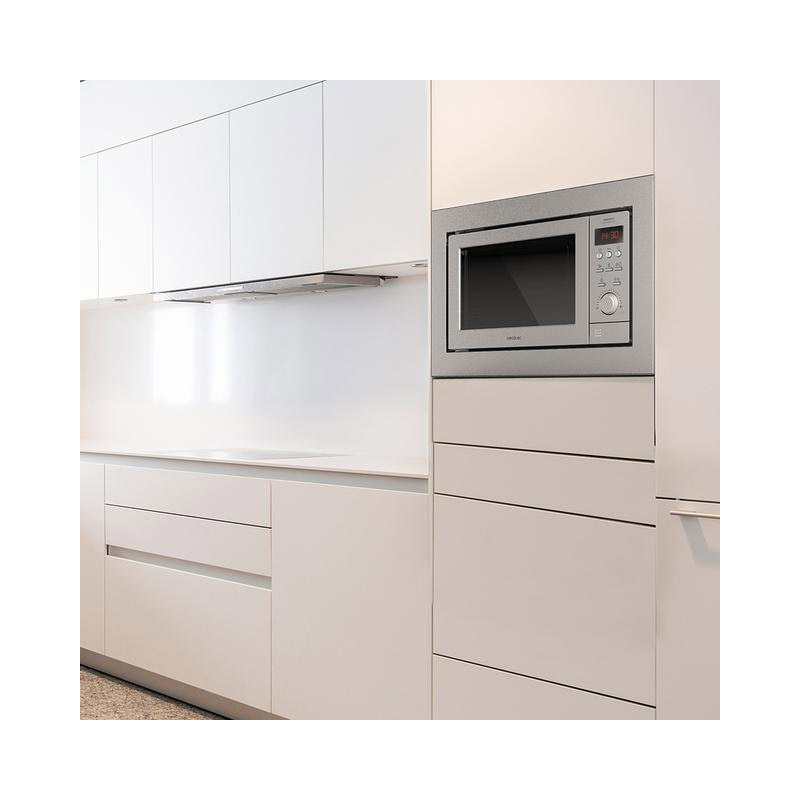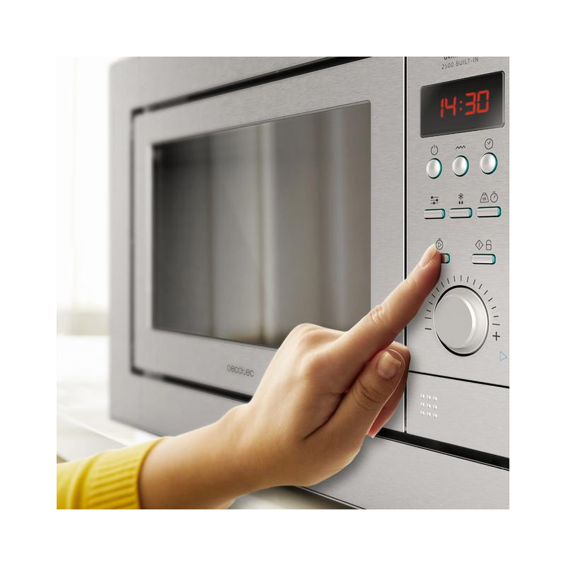 Ο εντοιχιζόμενος φούρνος μικροκυμάτων GrandHeat 2500 Built-In Steel, από την εταιρία Cecotec, διαθέτει ισχύ 900 W στα μικροκύματα και 1000 W στο γκριλ, με 6 επίπεδα ισχύος. Έχει 10 προεπιλεγμένες λειτουργίες για εύκολο μαγείρεμα ορισμένων τύπων φαγητού όπως λαχανικά, ποπ κορν, ζυμαρικά, ζέσταμα, πίτσα, πατάτες, βόειο κρέας και χοιρινό.