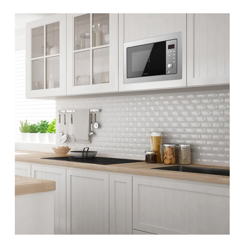 Ο εντοιχιζόμενος φούρνος μικροκυμάτων GrandHeat 2500 Built-In Steel Black, από την εταιρία Cecotec, διαθέτει ισχύ 900 W με 5 επίπεδα στα μικροκύματα και 1000 W στο γκριλ, με 3 λειτουργίες. Έχει 8 προεπιλεγμένες λειτουργίες για εύκολο μαγείρεμα ορισμένων τύπων φαγητού όπως πίτσα, πατάτες, κρέας, λαχανικά, ψάρια, ζυμαρικά, σούπα και κουάκερ.