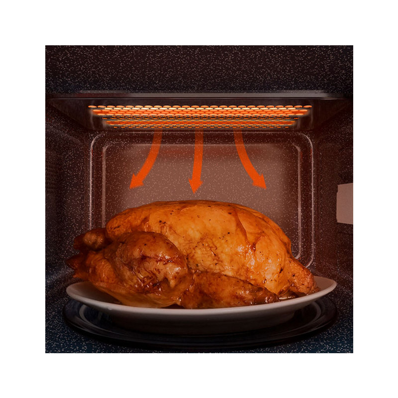 Ο φούρνος, είναι εξοπλισμένος με λειτουργία απόψυξης, ώστε τα τρόφιμα να ξεπαγώνουν γρήγορα και ομοιόμορφα, διατηρώντας παράλληλα την αρχική υφή και φρεσκάδα και τεχνολογία 3DWave με ένα πιο αποτελεσματικό σύστημα κυμάτων που περιβάλλει τα τρόφιμα 100%. Επιπλέον περιλαμβάνει γκριλ, με ισχυρή σχάρα χαλαζία, τέλεια ενσωματωμένη στην οροφή με προστατευτικό πλέγμα. Με αυτόν τον τρόπο διευκολύνεται ο καθαρισμός και τα αποφεύγονται εγκαύματα. Το εσωτερικό του έχει επικάλυψη Ready2Clean που το καθιστά πιο εύκολο στον καθαρισμό, καθώς απωθεί τη βρωμιά.
