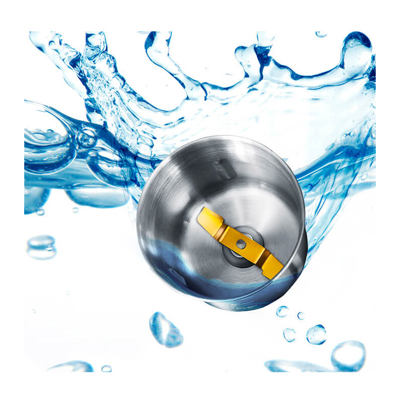 Ο μύλος διαθέτει σώμα και δεξαμενή 100% από ανοξείδωτο ατσάλι και δυνατή ισχύ 300 W. Οι λεπίδες του έχουν επίστρωση από τιτάνιο, προσφέροντας μεγαλύτερη σκληρότητα, διατηρώντας παράλληλα το ακόνισμα περισσότερο καιρό από τους συμβατικούς μύλους. Περιλαμβάνει 1 μεταλλικό δοχείο με 2 επίπεδες λεπίδες από τιτάνιο, για να αλέθετε εύκολα ξηρά συστατικά όπως καφέ, πιπέρι, μπαχαρικά, σπόρους και αλάτι, καθώς και 1 ακόμη μεταλλικό δοχείο για τη λειτουργία κοπής και τεμαχισμού, με λεπίδες 4 φύλλων τιτανίου που συνθλίβουν εύκολα συστατικά όπως καρύδια, βότανα, σκόρδο και μικρές ποσότητες τζίντζερ, λαχανικών ή κρέατος.