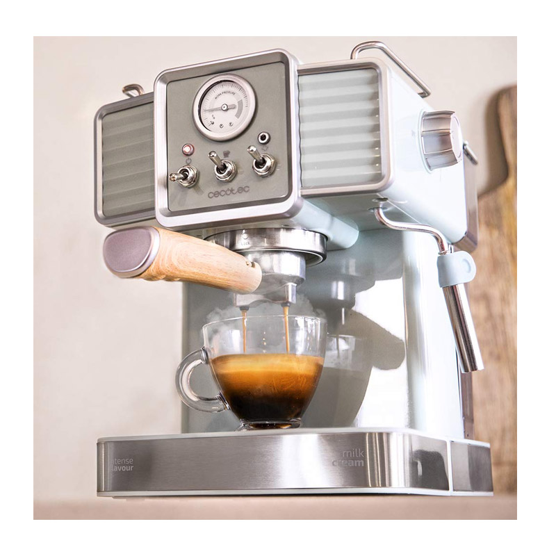 Η καφετιέρα Power Espresso 20 Tradizionale, από την εταιρία Cecotec, συνδυάζει τη λειτουργικότητα με τον vintage σχεδιασμό. Απολαύστε απεριόριστα είδη καφέ και ζεστά ροφήματα, χάρη στην ισχυρή αντλία πίεσης της με τεχνολογία ForceAroma 20 bar και αποκτήστε το μέγιστο άρωμα, την καλύτερη κρέμα και την υψηλότερη ένταση σε κάθε καφέ.
