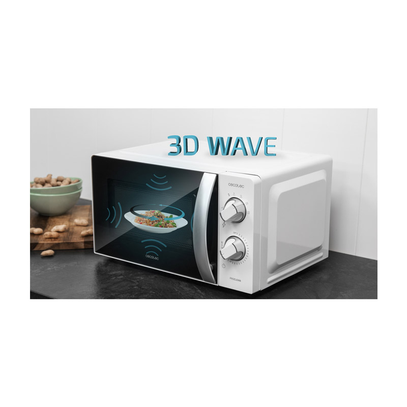 Ο φούρνος μικροκυμάτων ProClean 2010, από την εταιρία Cecotec, διαθέτει ισχύ 700 W, με 6 επίπεδα ισχύος. Eίναι εξοπλισμένος με λειτουργία απόψυξης, έτσι ώστε τα τρόφιμα να ξεπαγώνουν γρήγορα και ομοιόμορφα, διατηρώντας παράλληλα την αρχική υφή και φρεσκάδα και τεχνολογία 3DWave με ένα πιο αποτελεσματικό σύστημα κυμάτων που περιβάλλει τα τρόφιμα 100%. Το εσωτερικό του έχει εύκολο καθαρισμό.