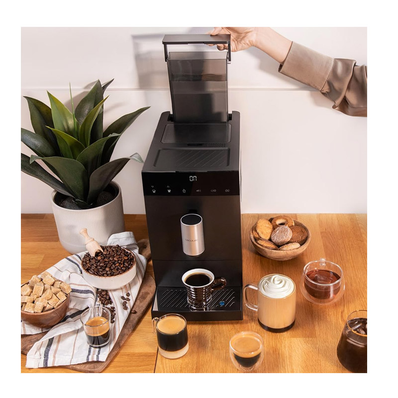 Η υπεραυτόματη καφετιέρα Espresso Cremmaet Compact, από την εταιρία Cecotec, είναι ιδανική για τους λάτρεις του φρέσκο αλεσμένου καφέ. Παρασκευάζει εσπρέσο και americano από φρέσκο αλεσμένους κόκκους καφέ με το πάτημα ενός κουμπιού χάρη στο σύστημα Plug&Play. Διαθέτει σύστημα ταχείας θέρμανσης της Thermoblock, που εγγυάται έναν τέλειο καφέ σε λίγα δευτερόλεπτα. Η ισχυρή αντλία πίεσης 19 Bar επιτυγχάνει την καλύτερη κρέμα και το μέγιστο άρωμα σε κάθε καφέ.