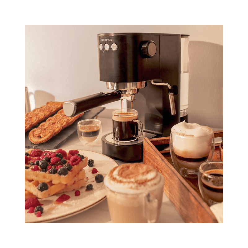 Η ισχυρή αντλία πίεσης με τεχνολογία Force Aroma 20 Bar θα σας επιτρέψει να απολαμβάνετε την καλύτερη κρέμα και το μέγιστο άρωμα με κάθε χρήση. Περιλαμβάνει ρυθμιζόμενο ακροφύσιο με προστασία που δίνει υφή στο γάλα και σας δίνει το καλύτερο αφρόγαλα. Διαθέτει αφαιρούμενη δεξαμενή νερού χωρητικότητας 1.2 Lt, δίσκο θέρμανσης φλιτζανιών από ανοξείδωτο ατσάλι και βραχίονα υποδοχής φίλτρου με διπλή έξοδο και δύο φίλτρα που ετοιμάζουν έως και δύο καφέδες αυτόματα.