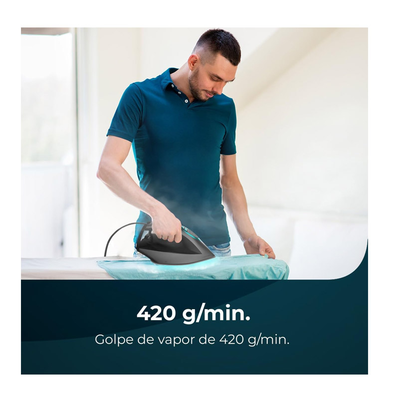 Εξαλείψετε και τις πιο έντονες ζάρες στα ρούχα σας, χάρη στη συνεχή παροχή ατμού 155 g / min και την υψηλή πίεση 8 Bar, αποκτώντας επαγγελματικά αποτελέσματα με γρήγορο και εύκολο τρόπο. Έχει 420 g / min ριπή ατμού, που εξαλείφει κάθε πτυχή σε ένα μόνο πέρασμα.