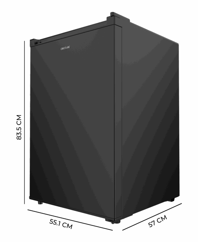 - Ιδανικές διαστάσεις: Οι διαστάσεις του μίνι ψυγείου (πλάτος x βάθος x ύψος) είναι 55,1 x 57,5 x 83,5 cm.