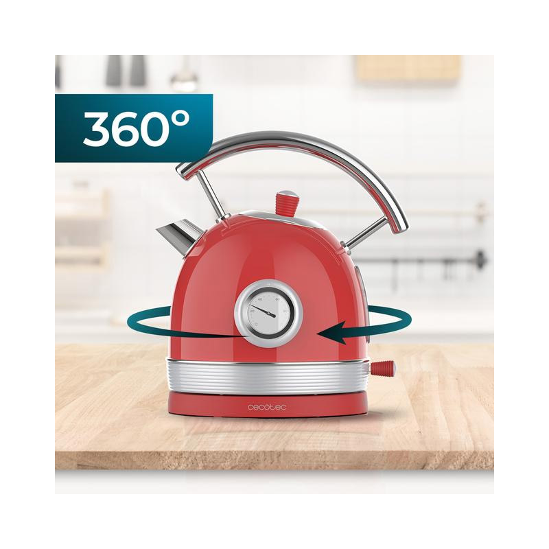 Ασύρματος Ηλεκτρικός Βραστήρας από Ανοξείδωτο Ατσάλι 1.8 Lt Χρώματος Κόκκινο Cecotec Thermosense 420 Vintage CEC-01981