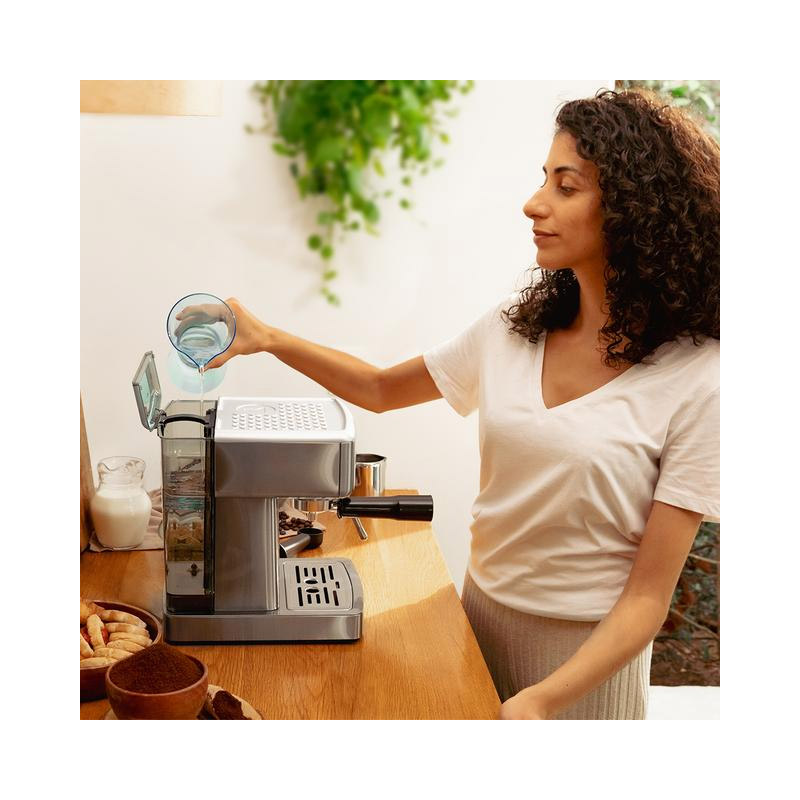 Η καφετιέρα, είναι εξοπλισμένη με αφαιρούμενη δεξαμενή νερού 1.8 Lt και δίσκο θέρμανσης φλυτζανιών από ανοξείδωτο ατσάλι. Με ρυθμιζόμενο εξάρτημα για αφρόγαλα και λειτουργία ζεστού νερού για τσάι. Με την τεχνολογία Thermoblock που διαθέτει, η καφετιέρα διασφαλίζει ότι η θερμοκρασία παραμένει στο βέλτιστο εύρος της για να αποκτήσετε τον καλύτερο καφέ.