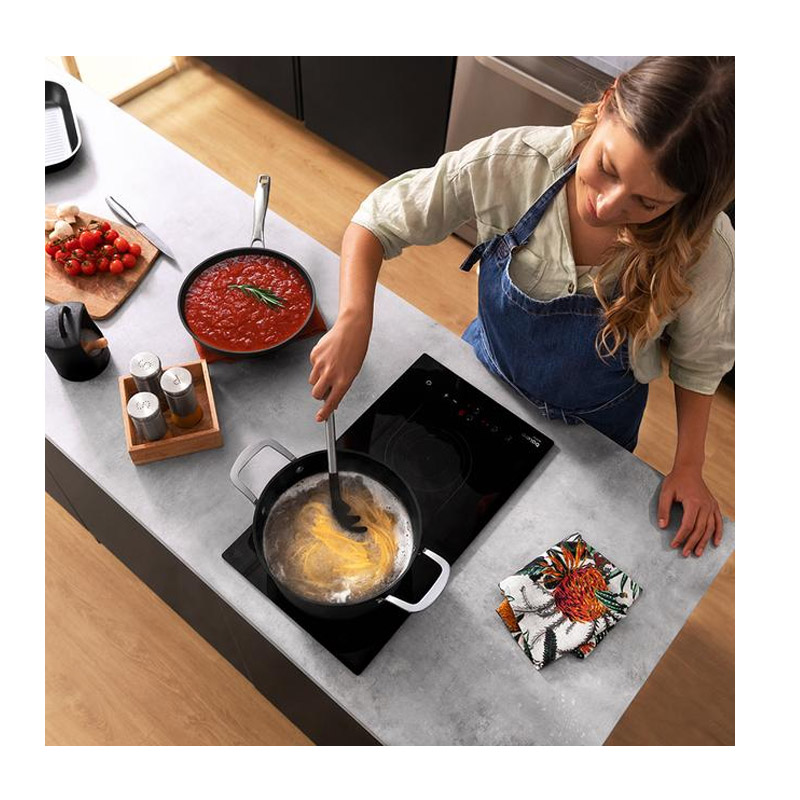 Η κεραμική εστία, από την εταιρία Cecotec, διαθέτει 2 εστίες και 9 επίπεδα ισχύος. Εξοπλισμένη με έλεγχο αφής, εξατομικευμένο χρονόμετρο, ένδειξη θερμότητας, κλειδαριά ασφαλείας για παιδιά και ανιχνευτή πανοραμικής λήψης. Ο ανιχνευτής, ανιχνεύει ανά πάσα στιγμή πότε το τηγάνι ή η κατσαρόλα είναι πάνω στην εστία, για να μην σπαταλήσει περιττή ενέργεια. Με αυτόν τον τρόπο είναι πάντα γνωστό πότε η κατσαρόλα είναι σωστά στημένη και αν το 100% της βάσης βρίσκεται στη ζώνη μαγειρέματος.