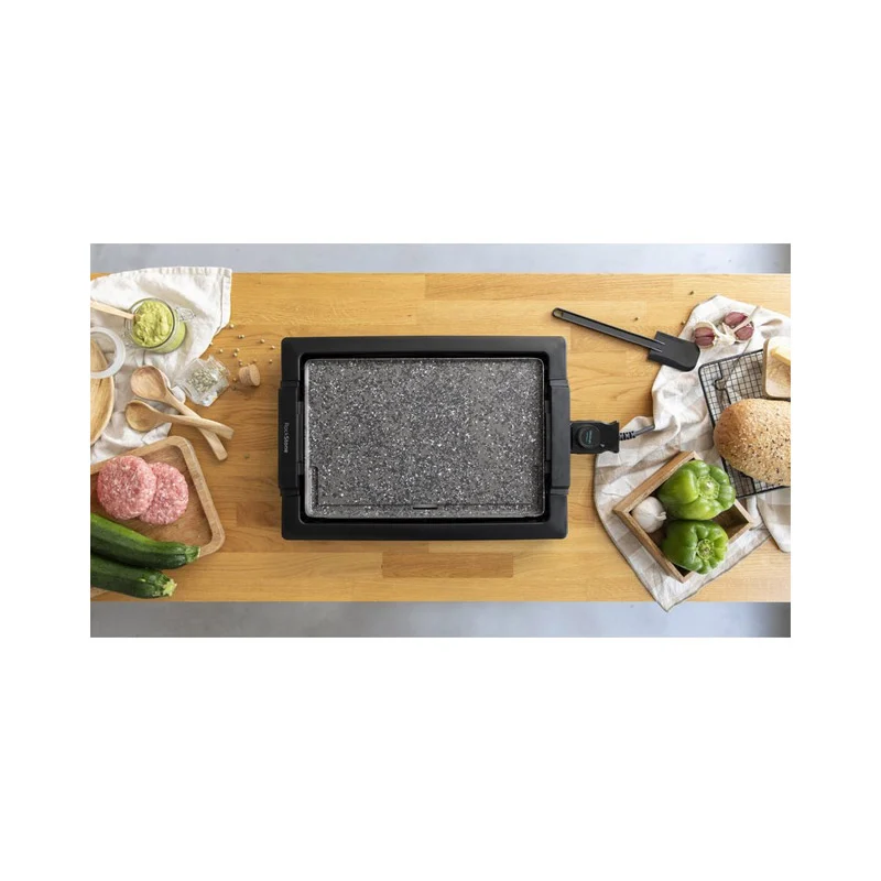 Με την ηλεκτρική ψηστιέρα – γκριλιέρα Tasty & Grill 2000 InoxStone, από την εταιρία Cecotec, μπορείτε να ετοιμάσετε υγιεινά πιάτα με λιγότερο λάδι, χωρίς να ανησυχείτε για τα τρόφιμα που κολλάνε στην επιφάνεια μαγειρέματος. Με μεγάλη, αφαιρούμενη, πέτρινη επιφάνεια μαγειρέματος, 37.5 x 24.5 cm, δεν θα έχετε κανένα πρόβλημα όταν πρέπει να μαγειρέψετε για τους επισκέπτες σας ή για όλη την οικογένεια.
