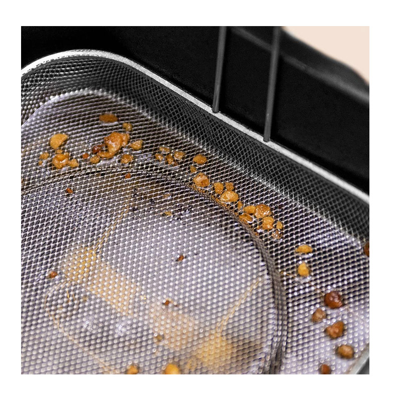 Η φριτέζα, περιλαμβάνει φίλτρο καθαρισμού του λαδιού για να διατηρείται το λάδι καθαρό μετά από κάθε χρήση. Το καπάκι είναι αφαιρούμενο και διαθέτει παράθυρο για να διευκολύνει τον έλεγχο της διαδικασίας τηγανίσματος καθώς και φίλτρο κατά των οσμών για αποφυγή ενόχλησης στην κουζίνα.