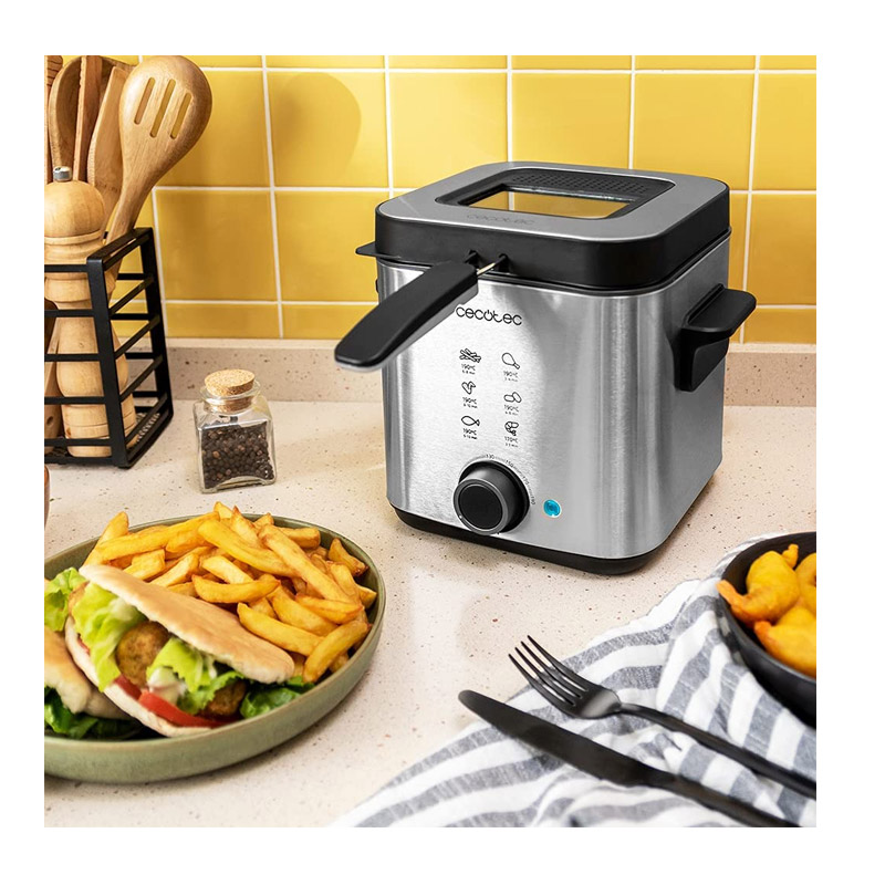 Η φριτέζα, από την εταιρία Cecotec, είναι ιδανική για τηγάνισμα πατάτας, κοτόπουλο ή ψάρι. Διαθέτει ισχύ 900 W, αφαιρούμενο δοχείο λαδιού χωρητικότητας 1.5 Lt και αποσπώμενο καλάθι τηγανίσματος με μη θερμαινόμενη λαβή για έλεγχο της διαδικασίας τηγανίσματος και αποφυγή εγκαυμάτων. Με ρυθμιζόμενη θερμοκρασία έως 190 °C για να επιτύχετε τα καλύτερα αποτελέσματα στις παρασκευές σας.