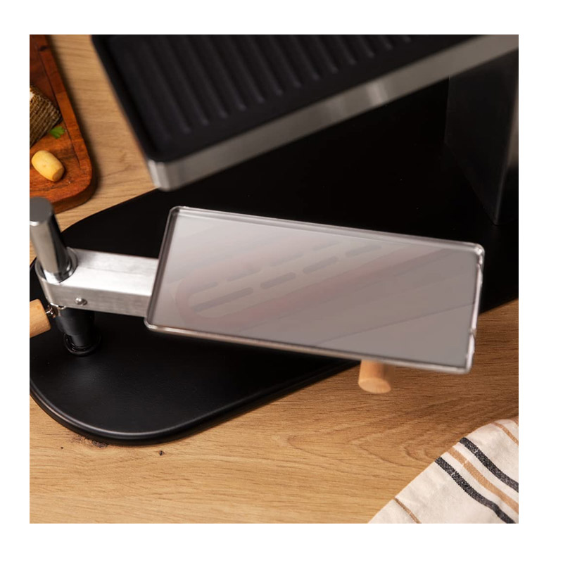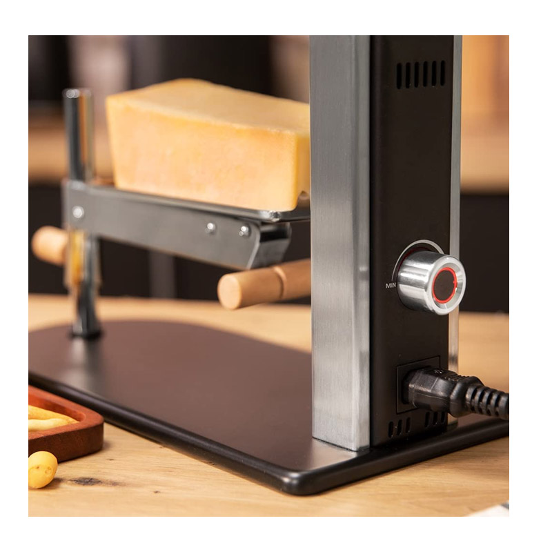 Είναι κατασκευασμένη από υψηλής ποιότητας ανοξείδωτο ατσάλι που παρέχει μοναδικό σχεδιασμό, καθώς και μεγαλύτερη ανθεκτικότητα και λιγότερη προσκόλληση στη βρωμιά. Είναι εξοπλισμένη με ρυθμιζόμενο θερμοστάτη που σας επιτρέπει να ρυθμίσετε τη θερμοκρασία στην οποία θέλετε να λιώσετε το τυρί και αντιολισθητικά πόδια που εγγυώνται τη σταθερότητα της συσκευής και μια πιο σταθερή εγκατάσταση.