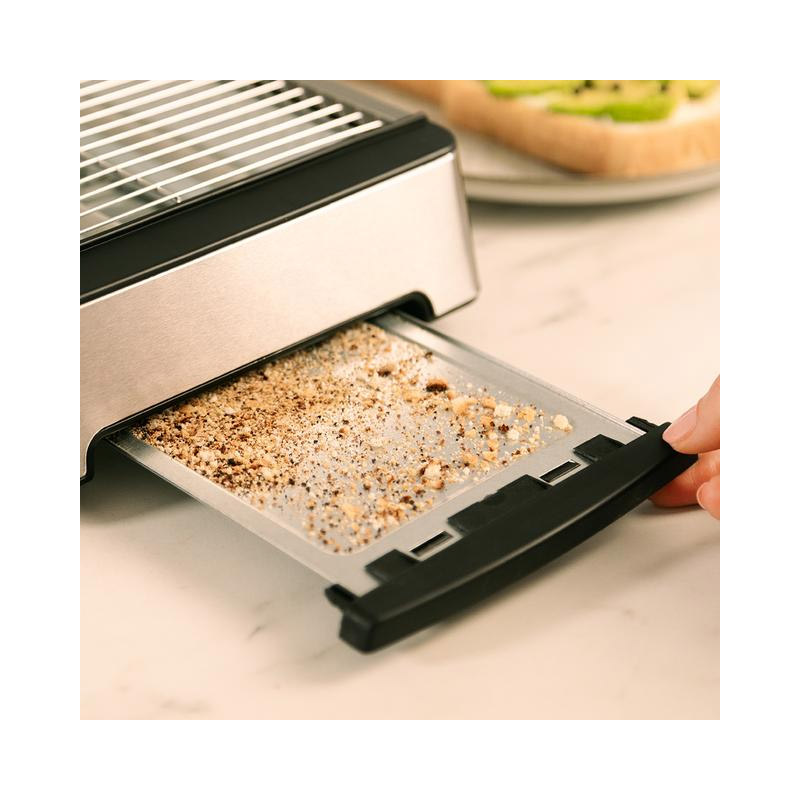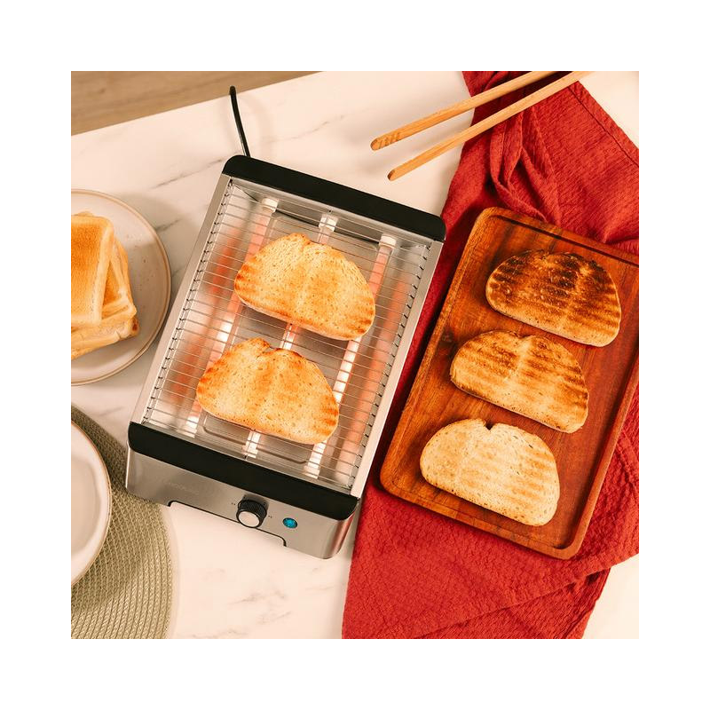 Η οριζόντια φρυγανιέρα, από την εταιρία Cecotec, σας επιτρέπει να φρυγανίζετε αποτελεσματικά όλους τους τύπους ψωμιού και αρτοσκευασμάτων. Διαθέτει 3 αντιστάσεις χαλαζία, ισχύ 1000 W, 6 επίπεδα φρυγανίσματος, κουμπί ON/OFF, ενδεικτική λυχνία λειτουργίας και δίσκο για τα ψίχουλα.