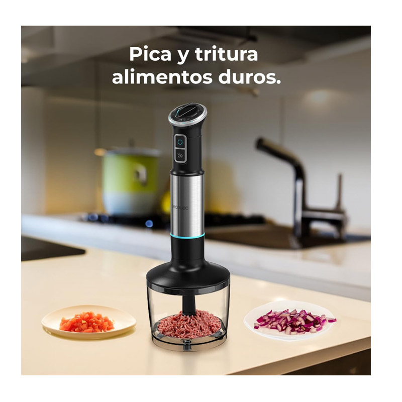 Το ραβδομπλέντερ χειρός, από την εταιρία Cecotec, με ισχύ 1100 W επιτυγχάνει γρήγορα λεπτά και ομοιογενή μείγματα. Χάρη στην τεχνολογία CrossBlades, η επίστρωση τιτανίου στις λεπίδες αυξάνει τη σκληρότητα και την ευκρίνεια για να συνθλίψει ακόμη και τα πιο σκληρά τρόφιμα. Απολαύστε μεγαλύτερη εμβέλεια και άνεση με το μοντέλο του με πολύ μακρύ πόδι.