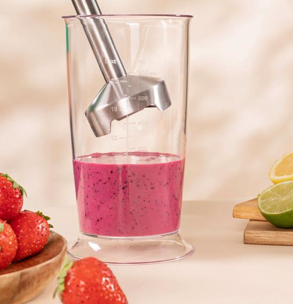 • Μέγιστη ισχύς: Με 1200 W, το ραβδομπλέντερ πετυχαίνει γρήγορα λεπτές και ομοιογενείς μίξεις.